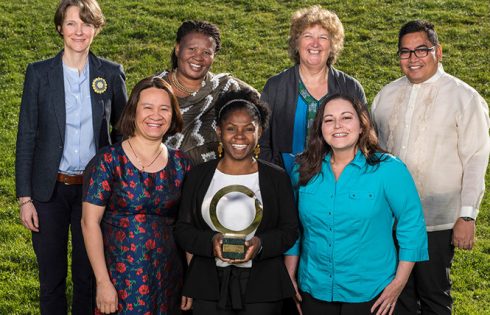 Bà Ngụy Thị Khanh (đầu tiên từ trái qua, hàng dưới) là người Việt đầu tiên nhận Giải thưởng Môi trường Goldman năm 2018 – Ảnh: GreenID